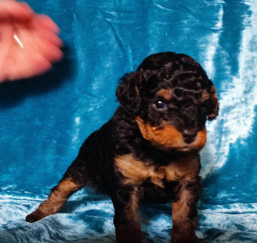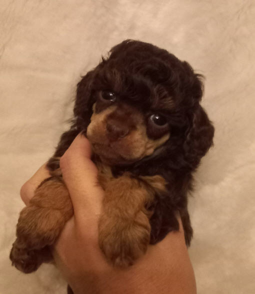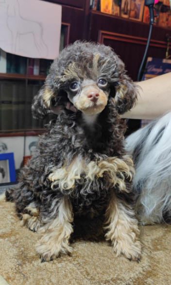 Пудель-фантом той, черно-подпалый и коричнево-подпалый