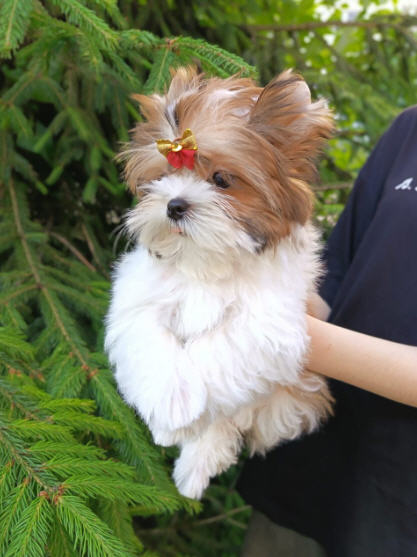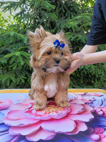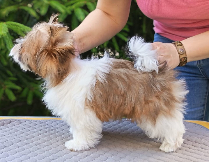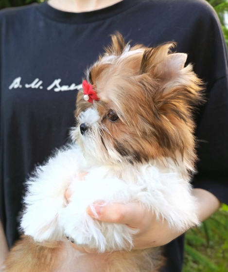 Молочные зубы: прикус норма, резцы 6х6, клыки в замке. Тугие десна, зубы вылезали долго, из-за чего иногда торчит язык. «Привет» от предков ши-тцу.