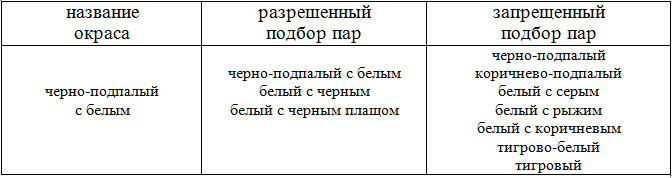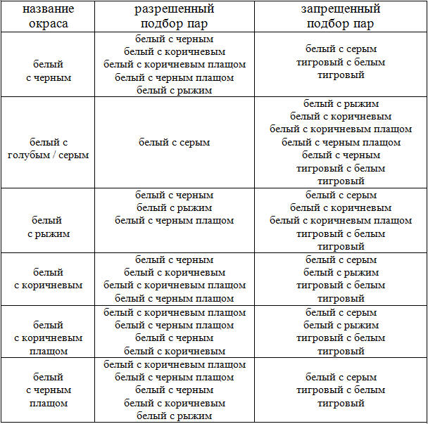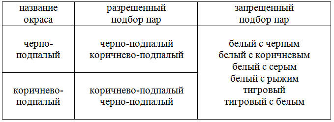 Оригинал документа можно посмотреть здесь (внизу страницы: «Скачать таблицу сочетаний окрасов…»)